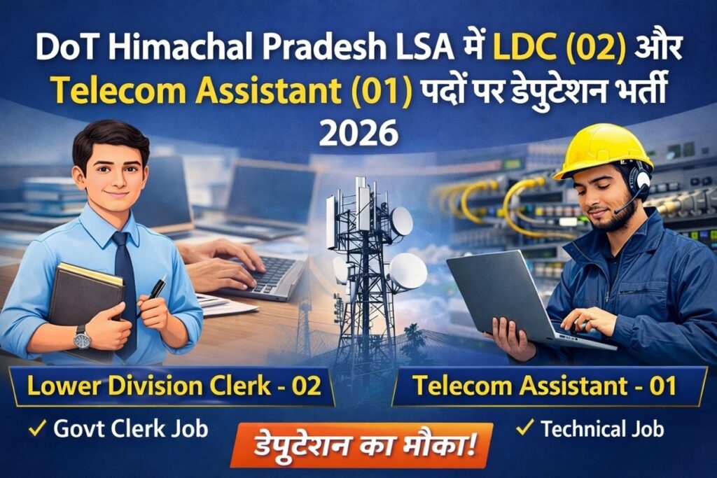 दूरसंचार विभाग (Department of Telecommunications – DoT), भारत सरकार के अंतर्गत कार्यालय अतिरिक्त महानिदेशक दूरसंचार (Addl. DGT) द्वारा हिमाचल प्रदेश लाइसेंस्ड सर्विस एरिया (LSA) के लिए ग्रुप ‘C’ 3 पदों पर भर्ती हेतु वैकेंसी सर्कुलर जारी किया गया है।